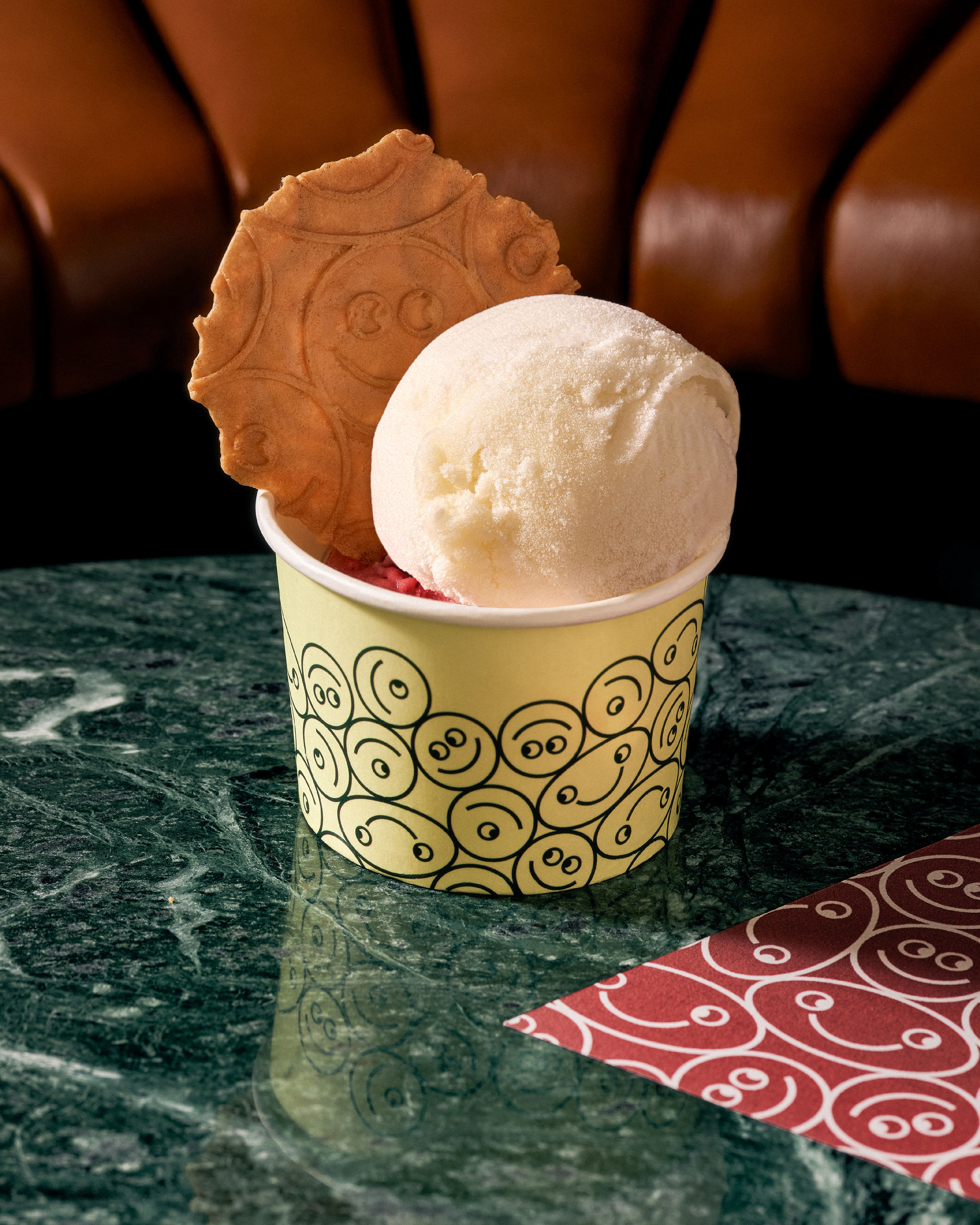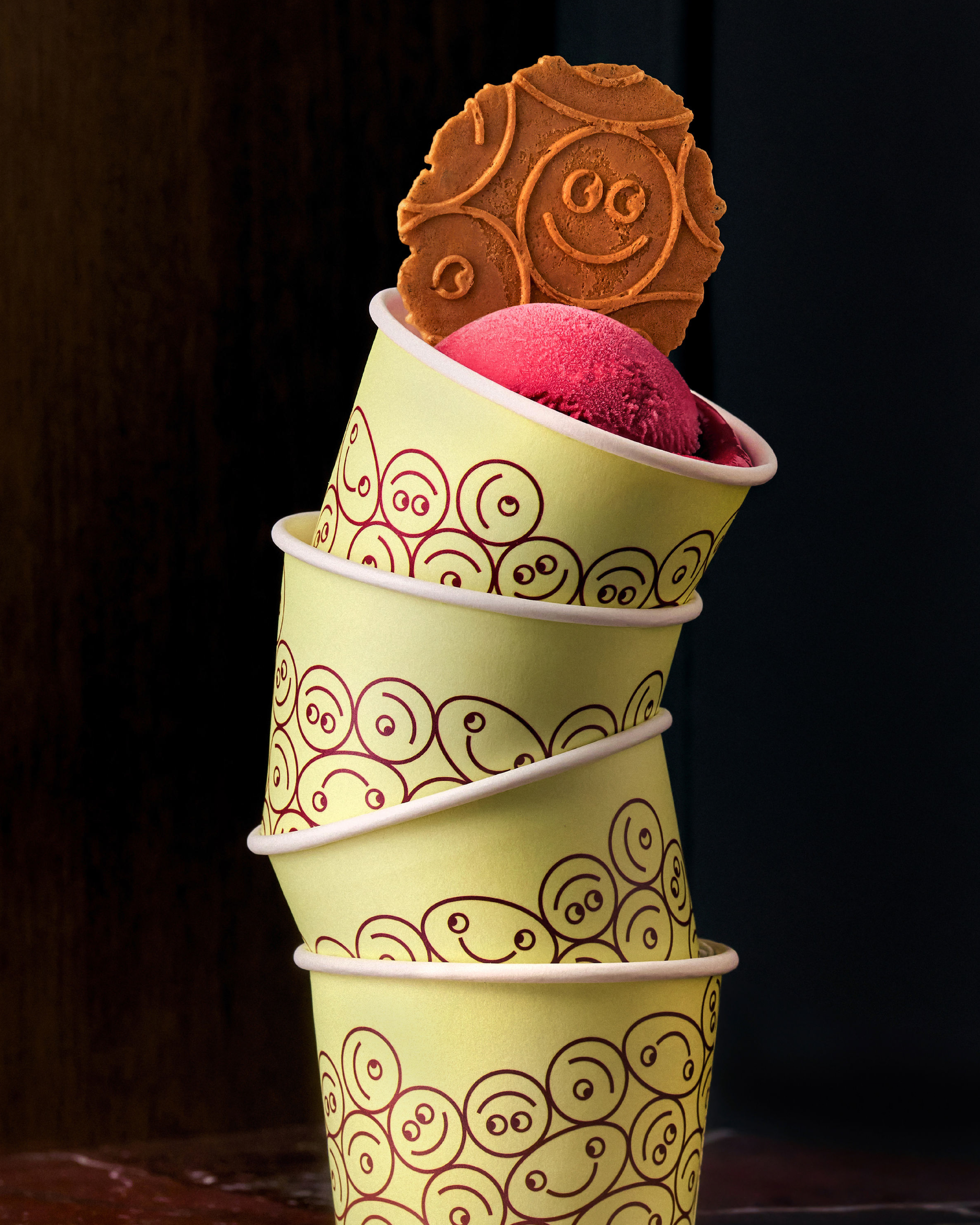 Flavours that read with audacity are served under lighting fixtures that look like they’re judging you. The cones, too. Irreverent illustrations are gleefully unmoored from logic. Furnishings are charming in their chaos.
